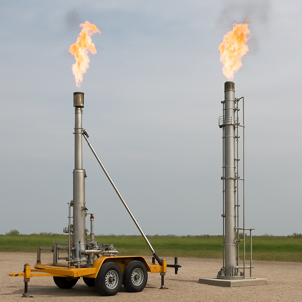 Sistemas de flare portátiles y estacionarios diseñados para una quema segura y eficiente de gases, adaptados a diversas operaciones industriales.